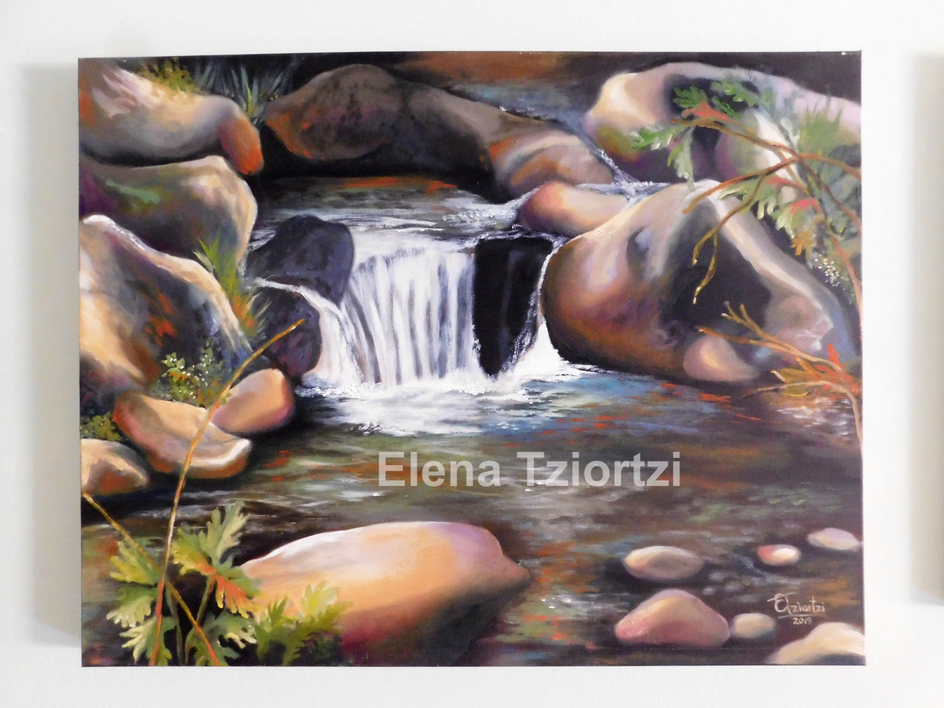 A beautiful painting on canvas featuring a tiny detail from the small river of Kallidonia waterfalls at Troodos mountain in Cyprus. Add the freshness of this scene to your interior!
