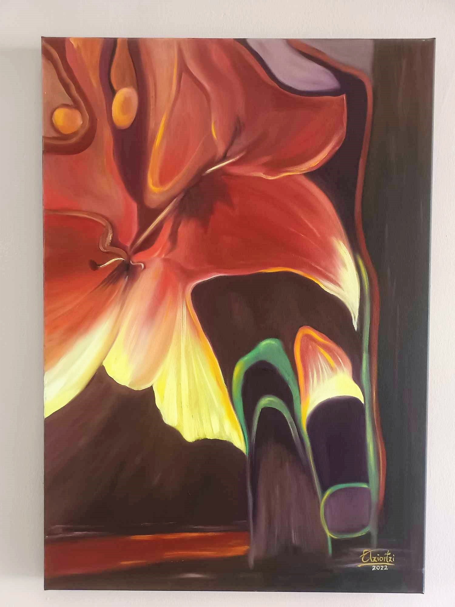An abstract flower painting on a 3D canvas and oil paints. From the series "Nature, a different perception"