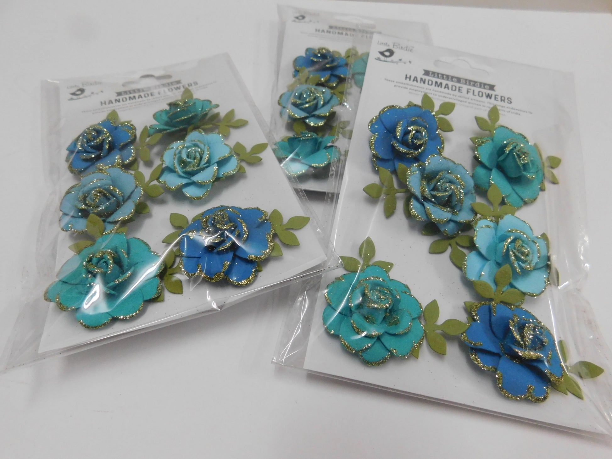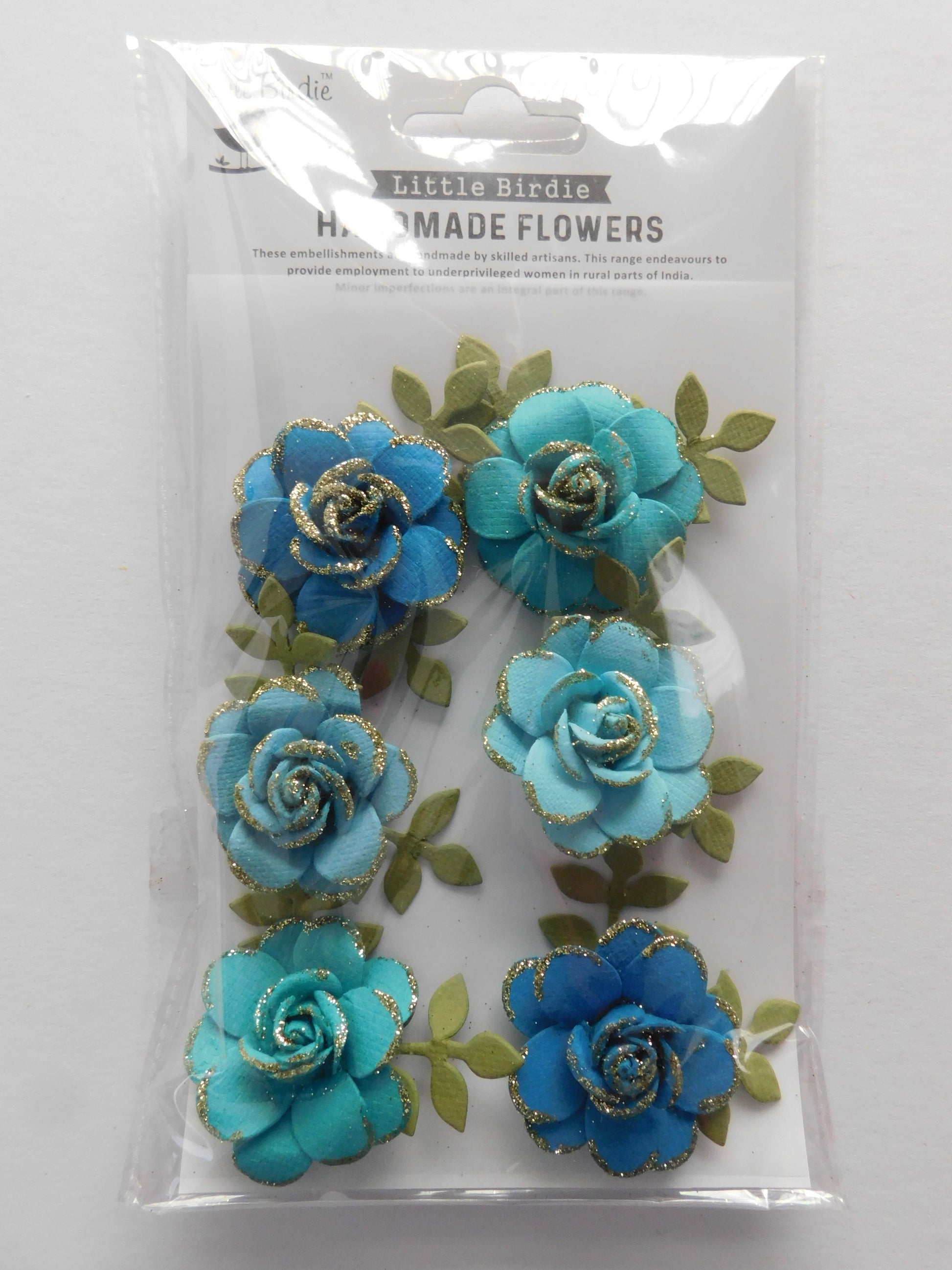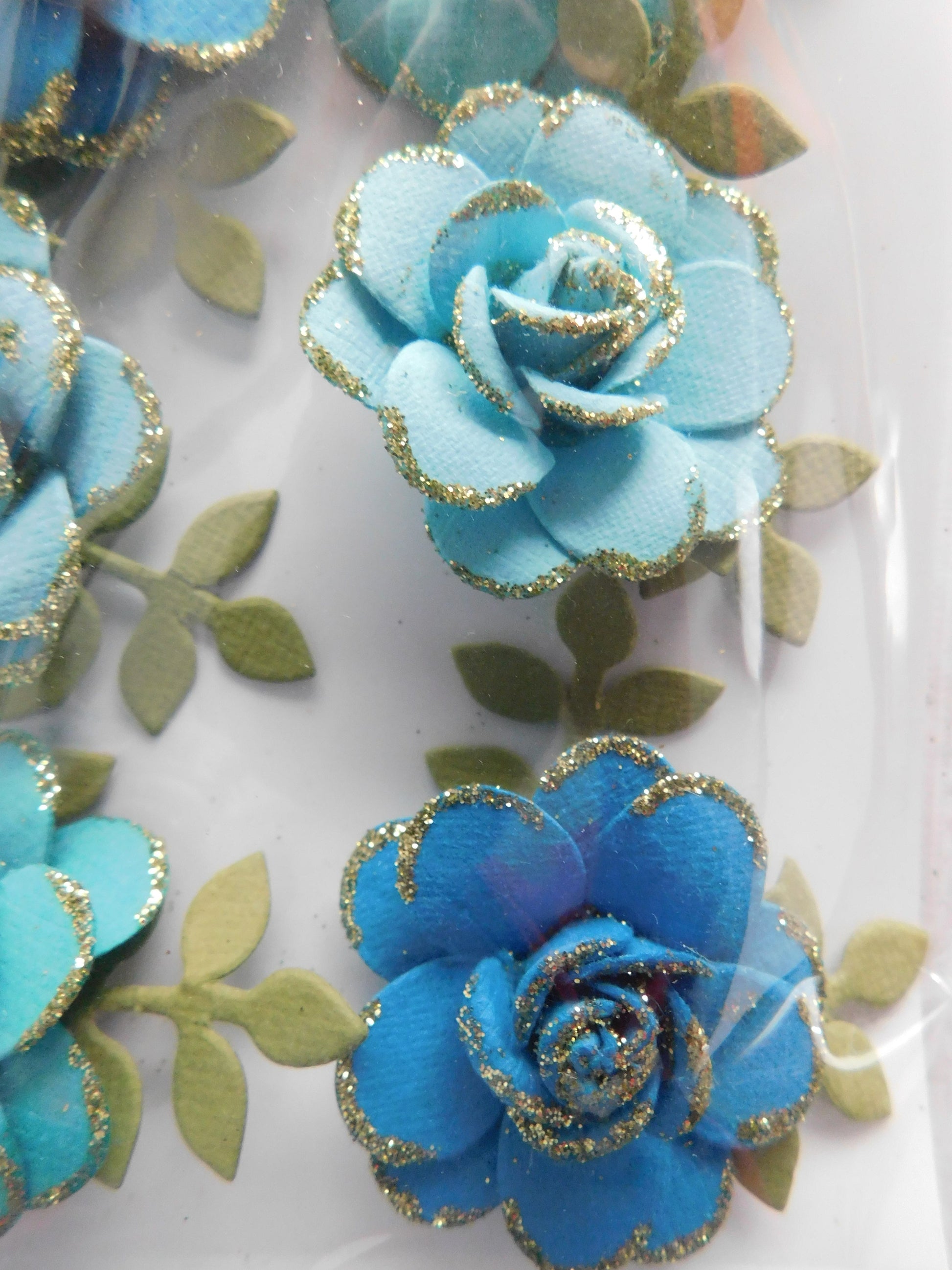 Six beautiful handmade aqua roses to decorate your cards or scrapbook or any of your crafts. (Size: 3.5 cm diameter).