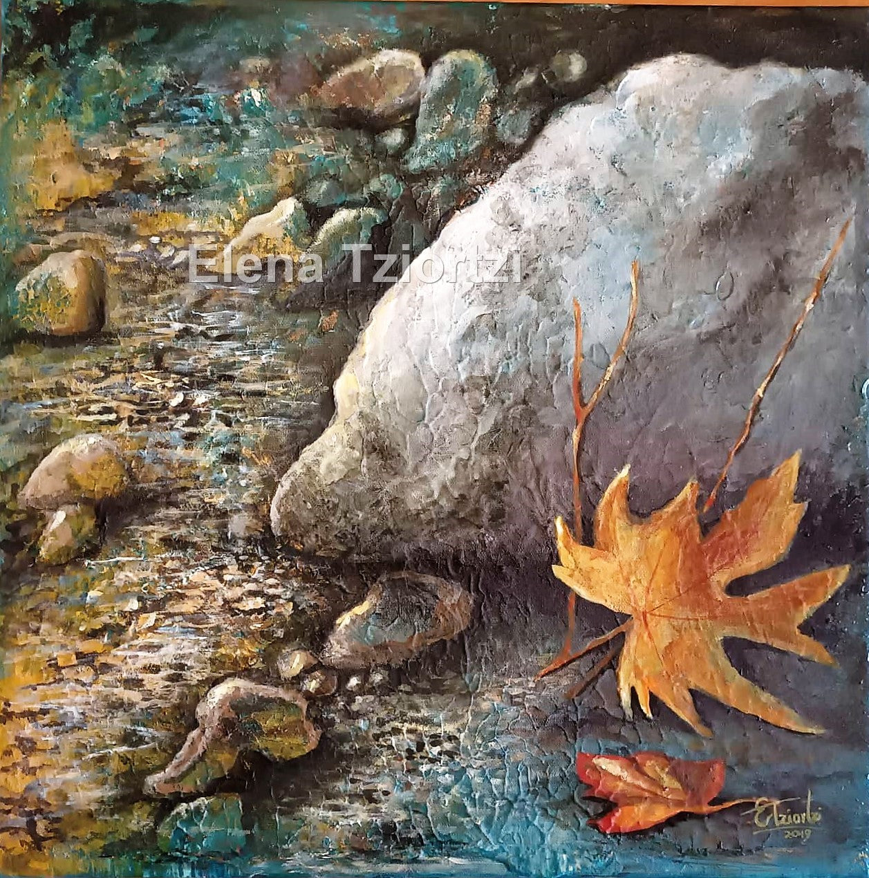 An autumn scene on canvas painted in acrylics, is ready to decorate your space.
