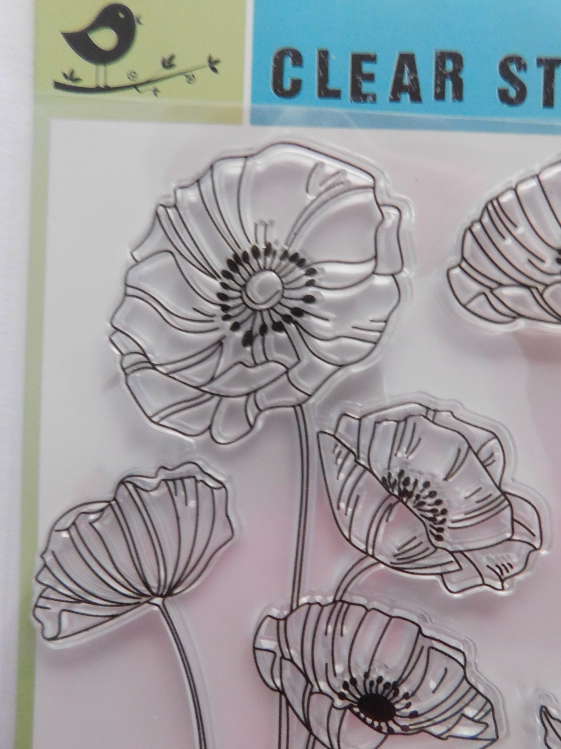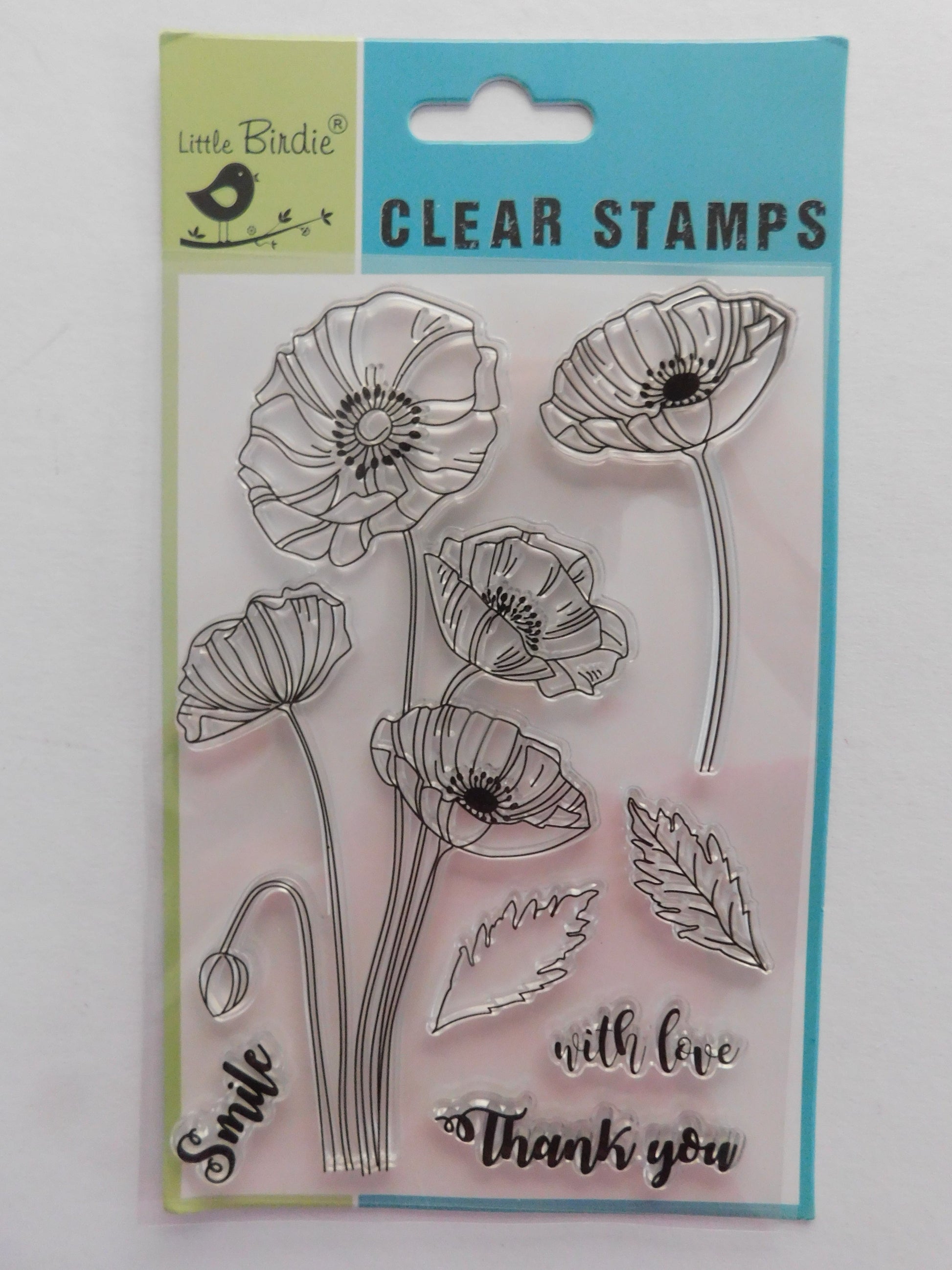 A beautiful set of poppies clear stamps for your cards/scrapbooking creations. The set contains a bunch of poppies, a single poppy, two leaves shapes and words ('with love', 'thank you', 'Smile'.