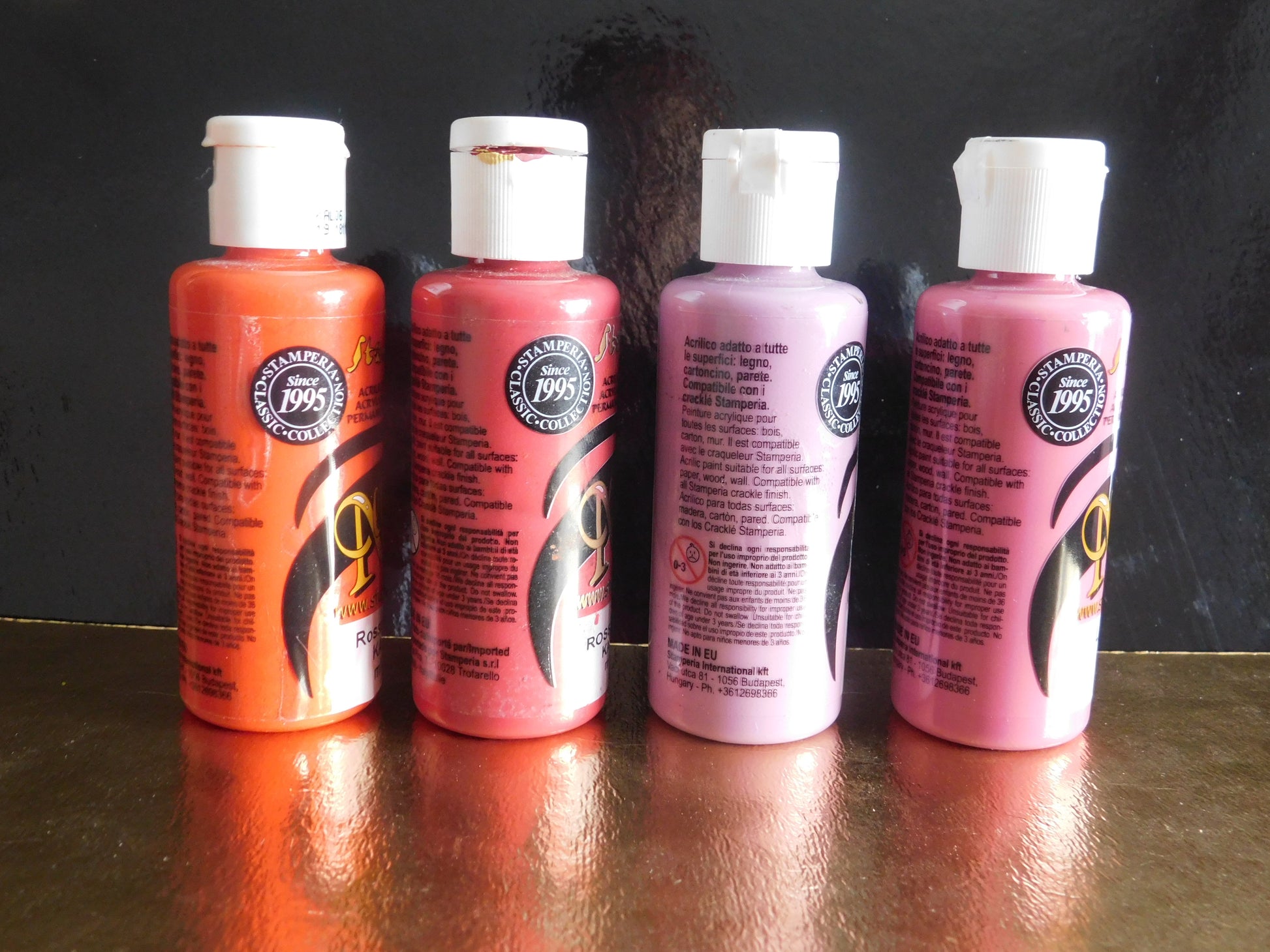 A variety of colours from the collection of Stamperia's Allegro acrylic paints for your creations, ideal for your decoupage. You can use them with a brush or sponge. (Remember to clean your tools with lukewarm water and dishes soap after you finish, and clean the bottle's lid to ensure that your paint will not dry).