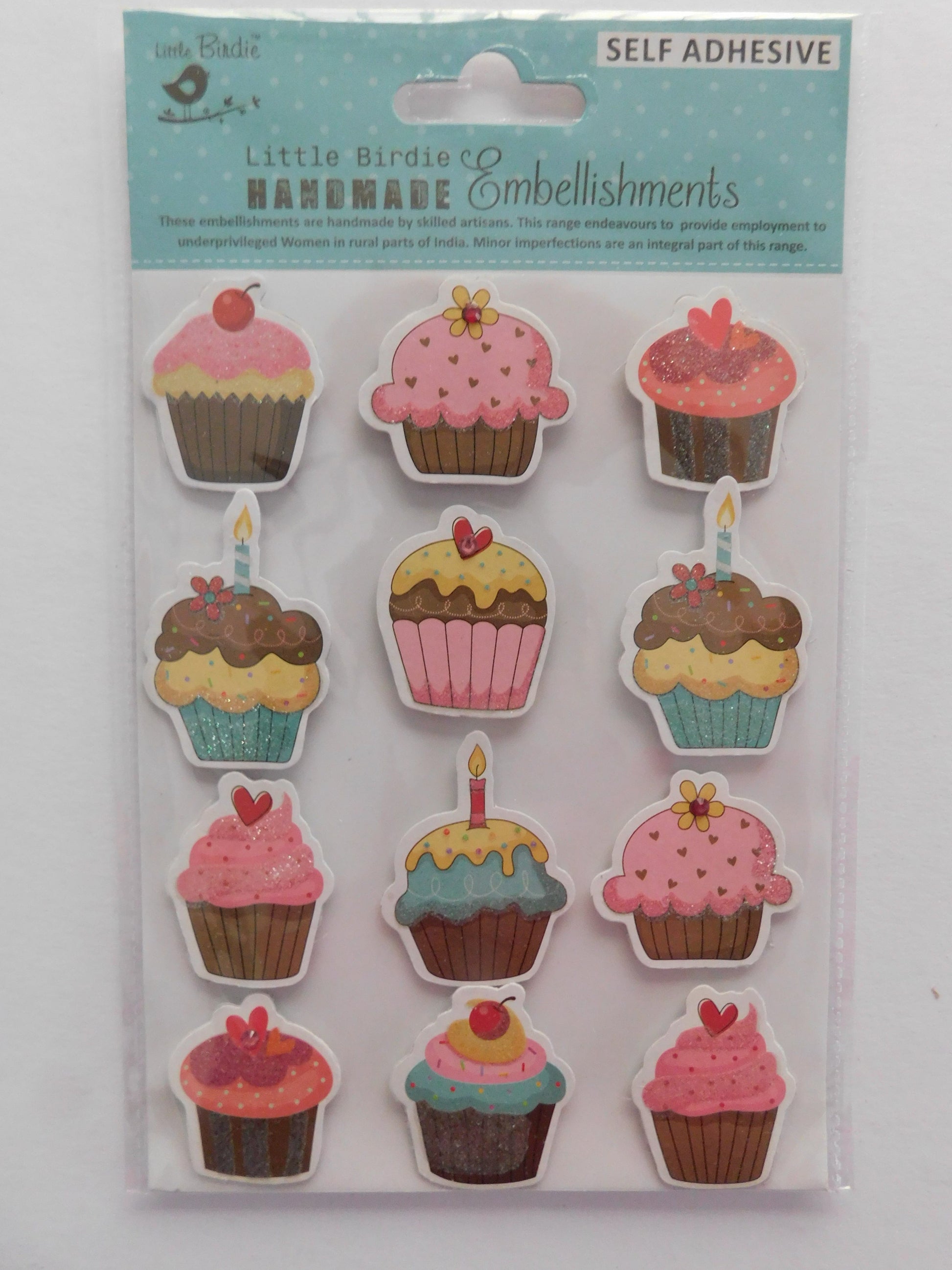 Another cute product of Little Birdie. A set of 12 self-adhesive cupcake stickers for your creations. (Size: 3cm X 3cm).
