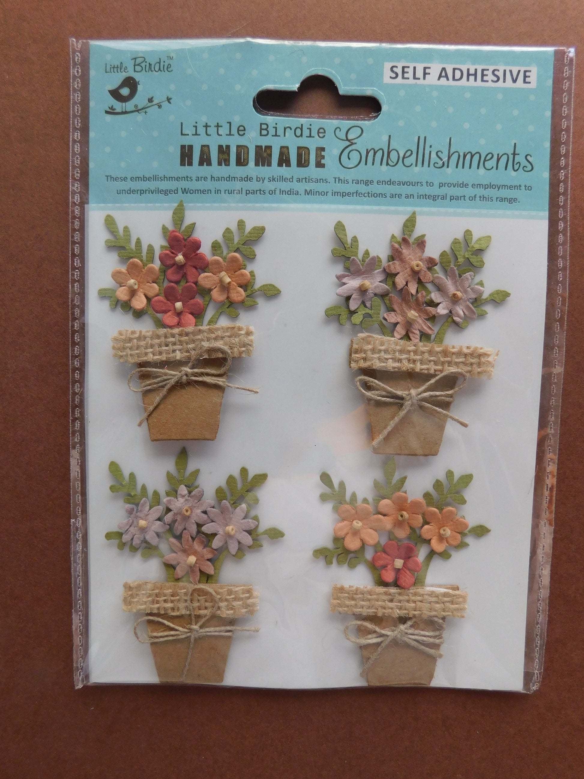 A set of 4 handmade self-adhesive flower pots! Two different combinations of colours in each set.