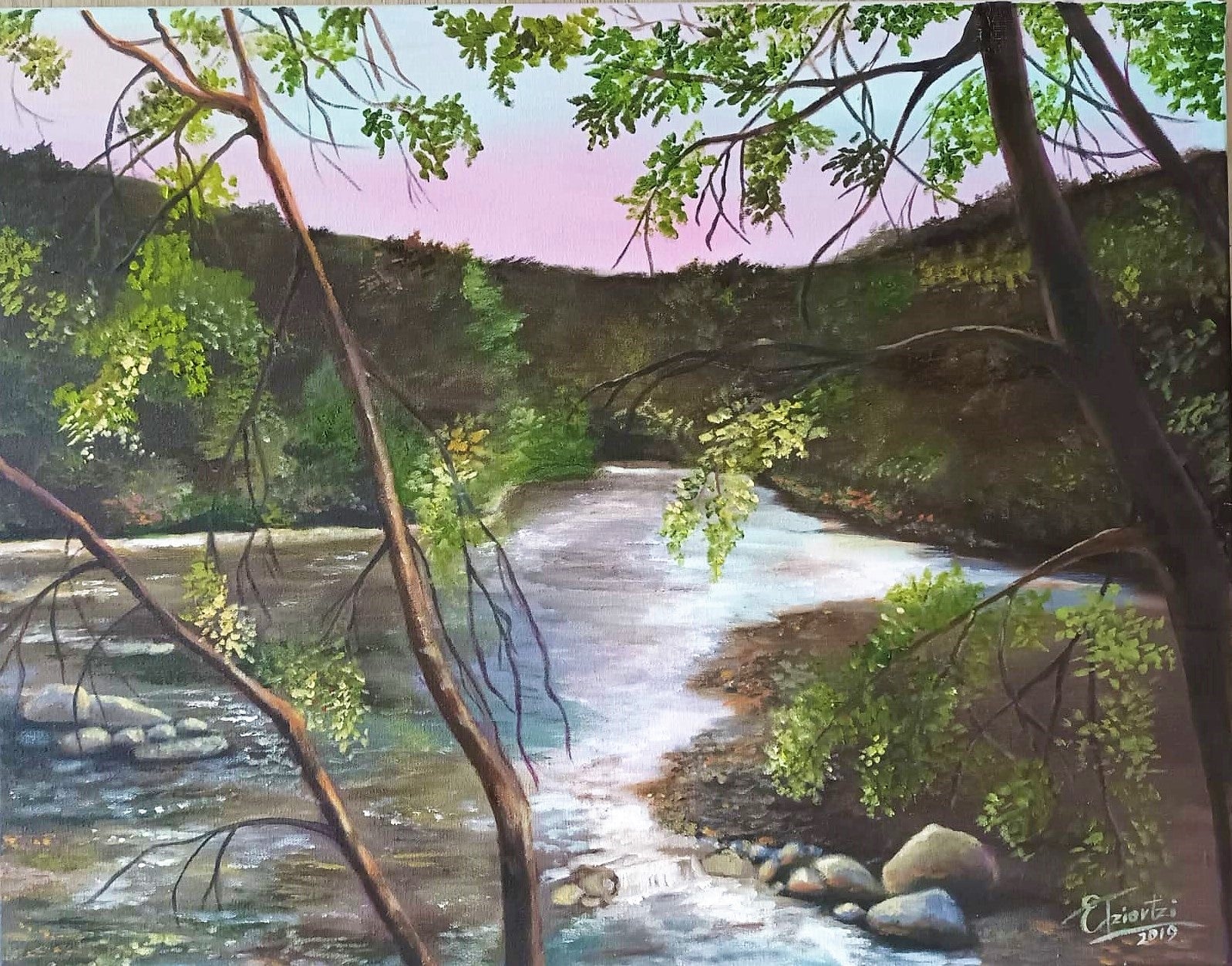 A beautiful painting on canvas featuring a scene from Scotland’s landscapes. Travel to this peaceful place and watch the afternoon sky turning pink from your own place!