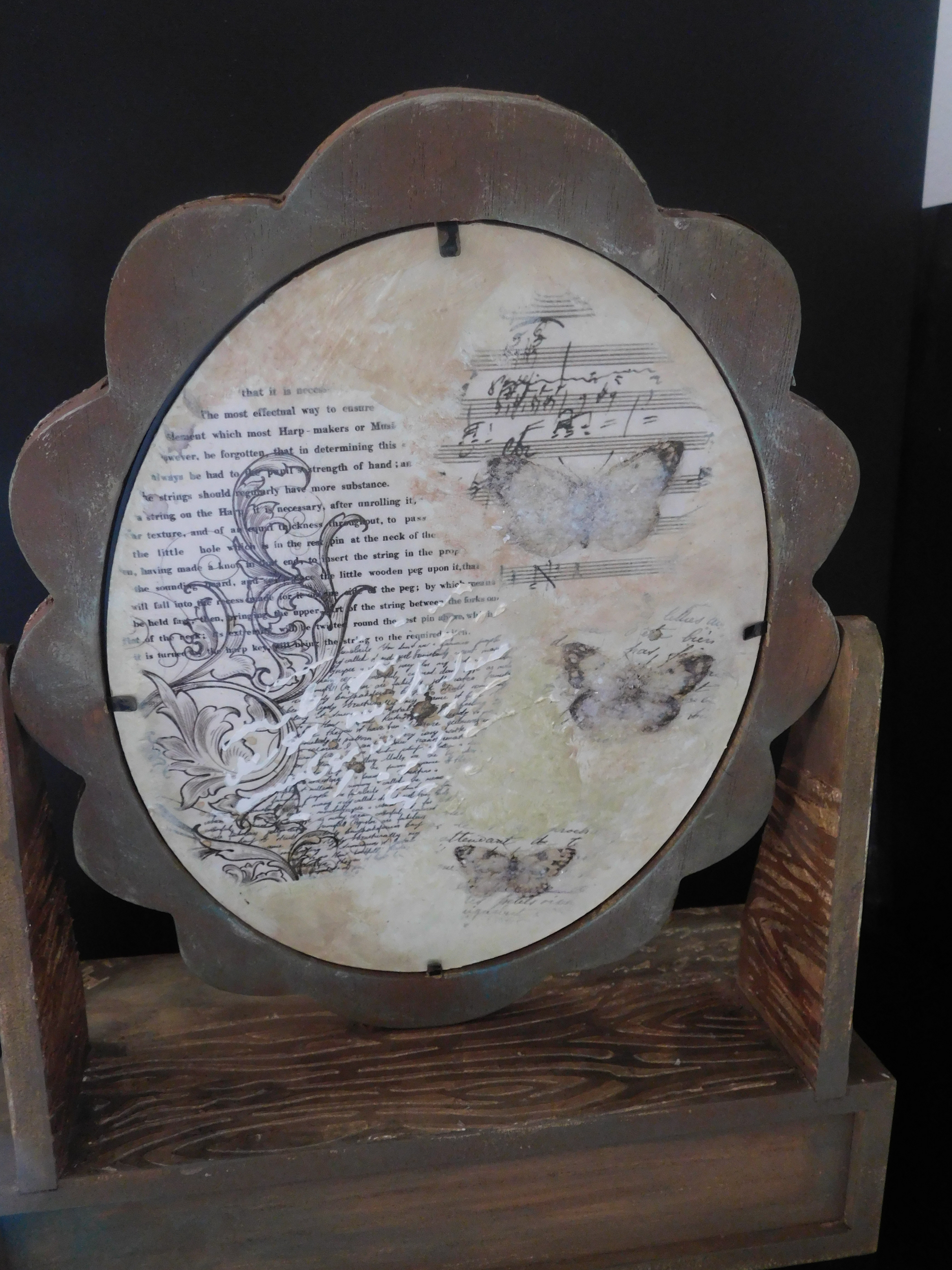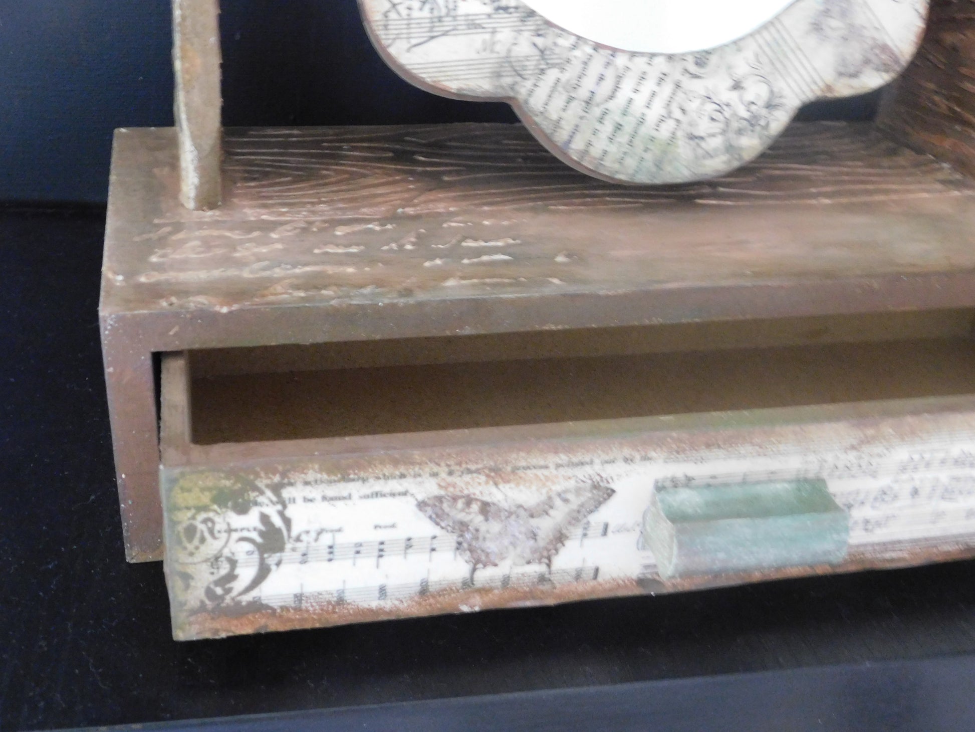 A cute oval mirror with a drawer. Wooden base, decorated with decoupage technique using rice paper from Stamperia.