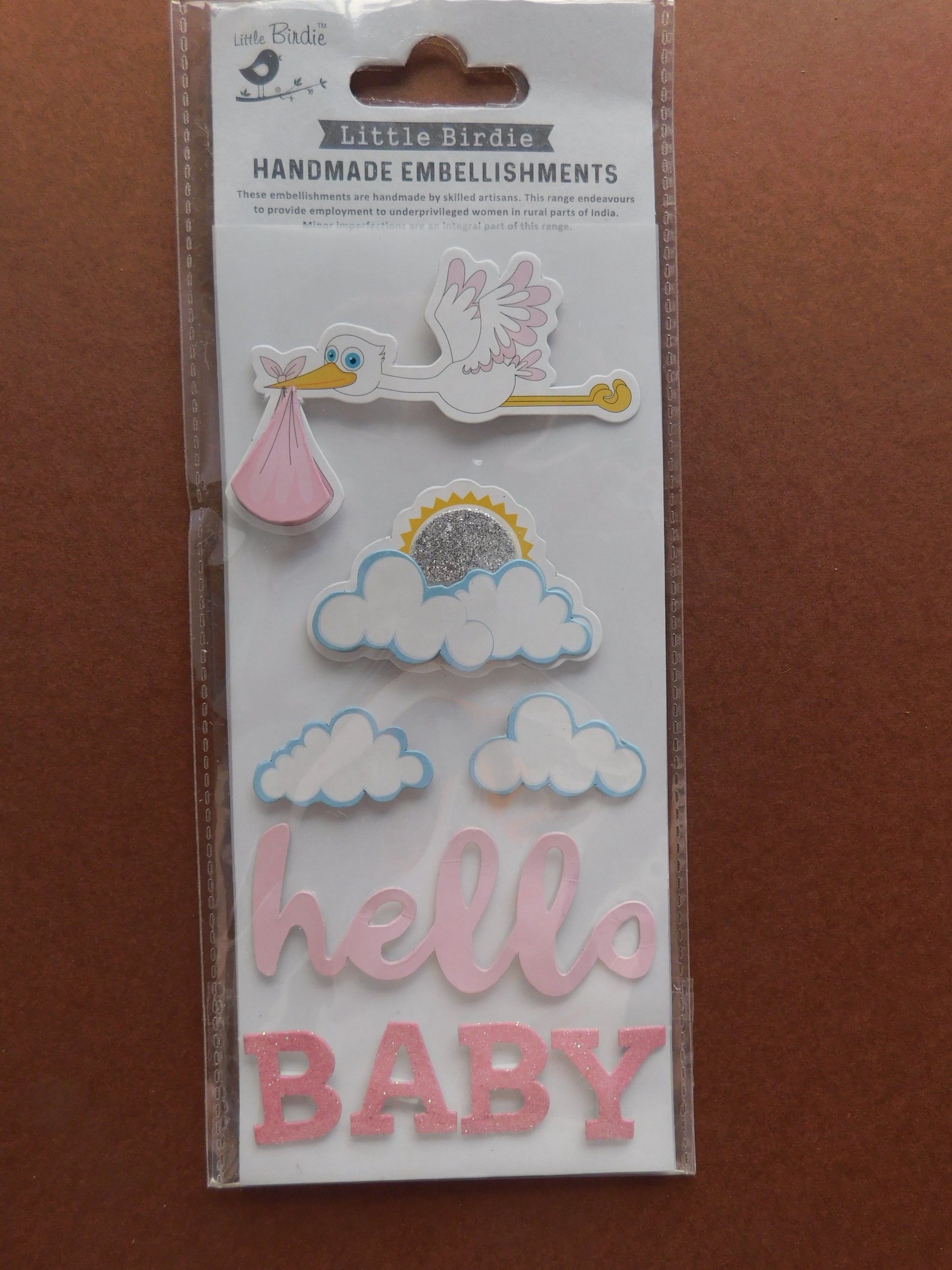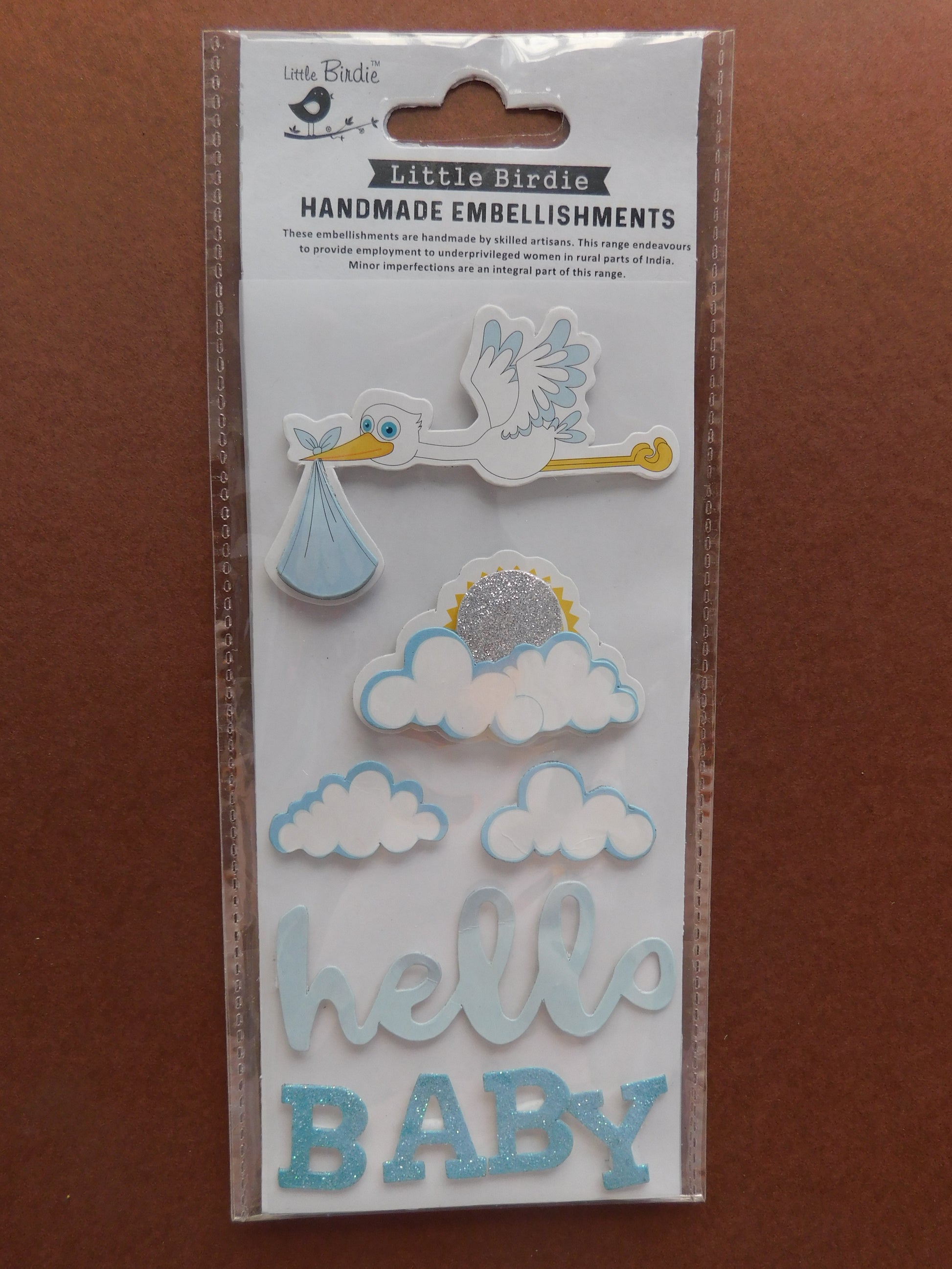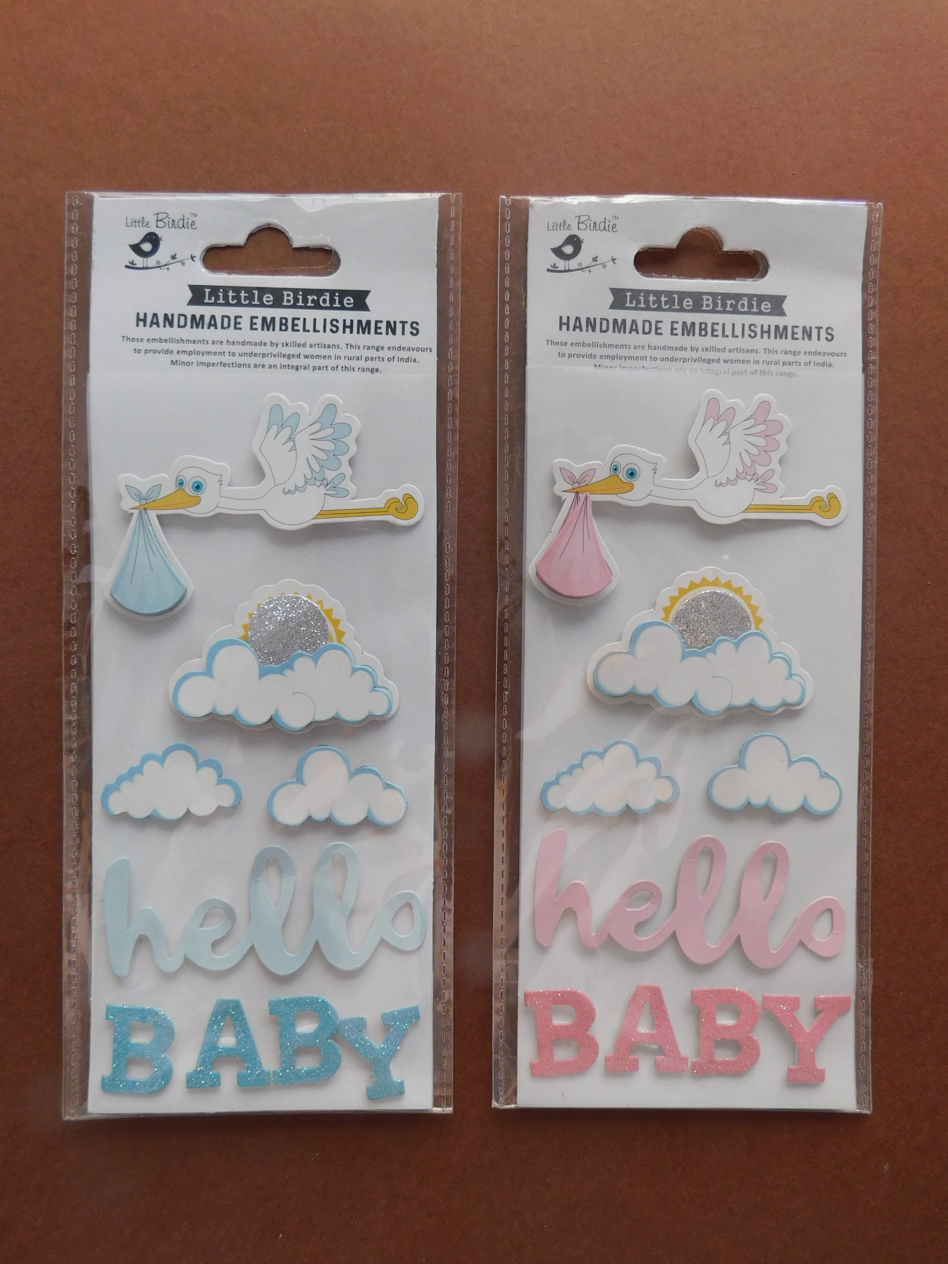 A cute set of new born baby embellishments for your craft creations. The set contains 9 small embellishments and comes in two colours.
