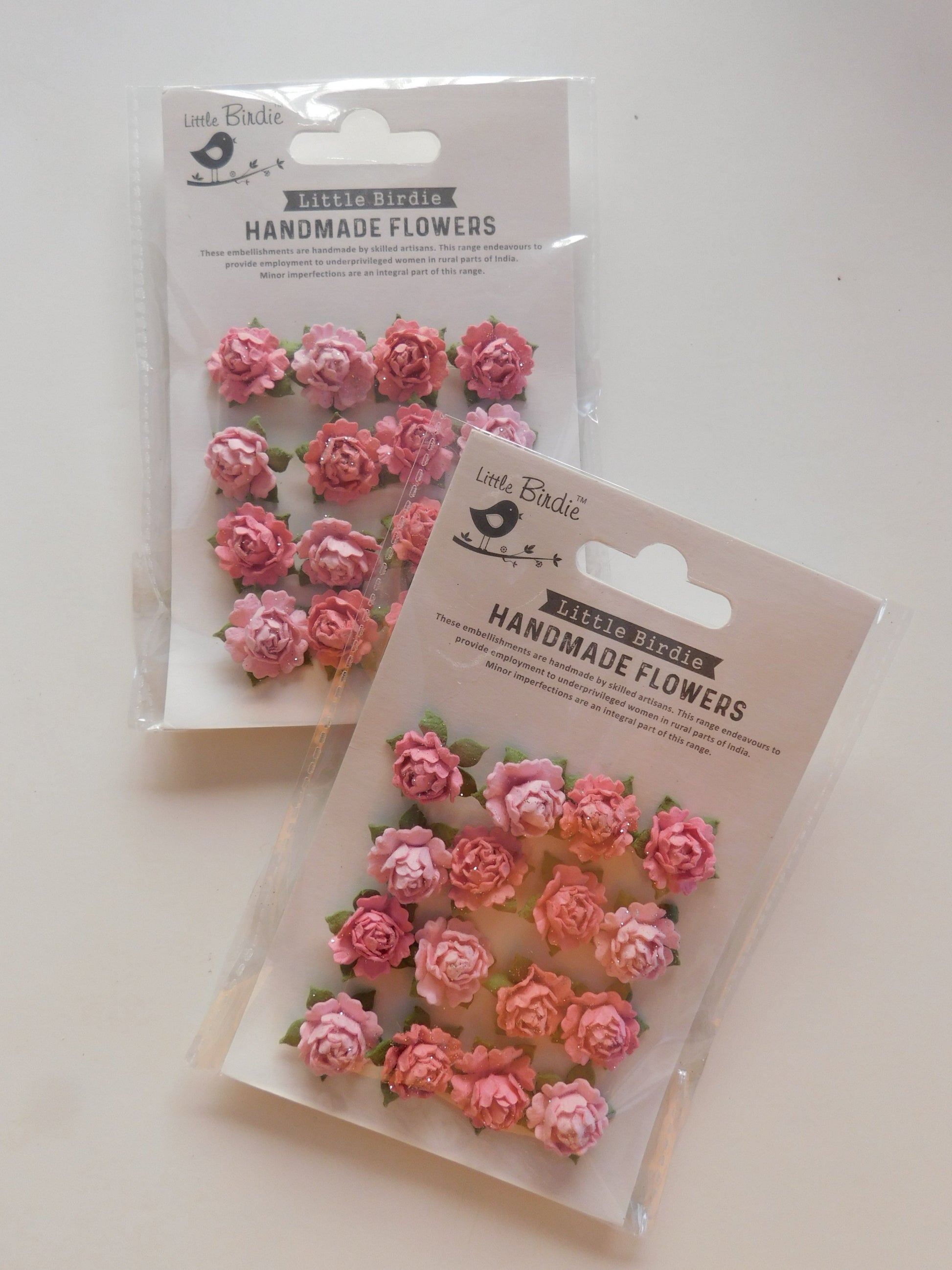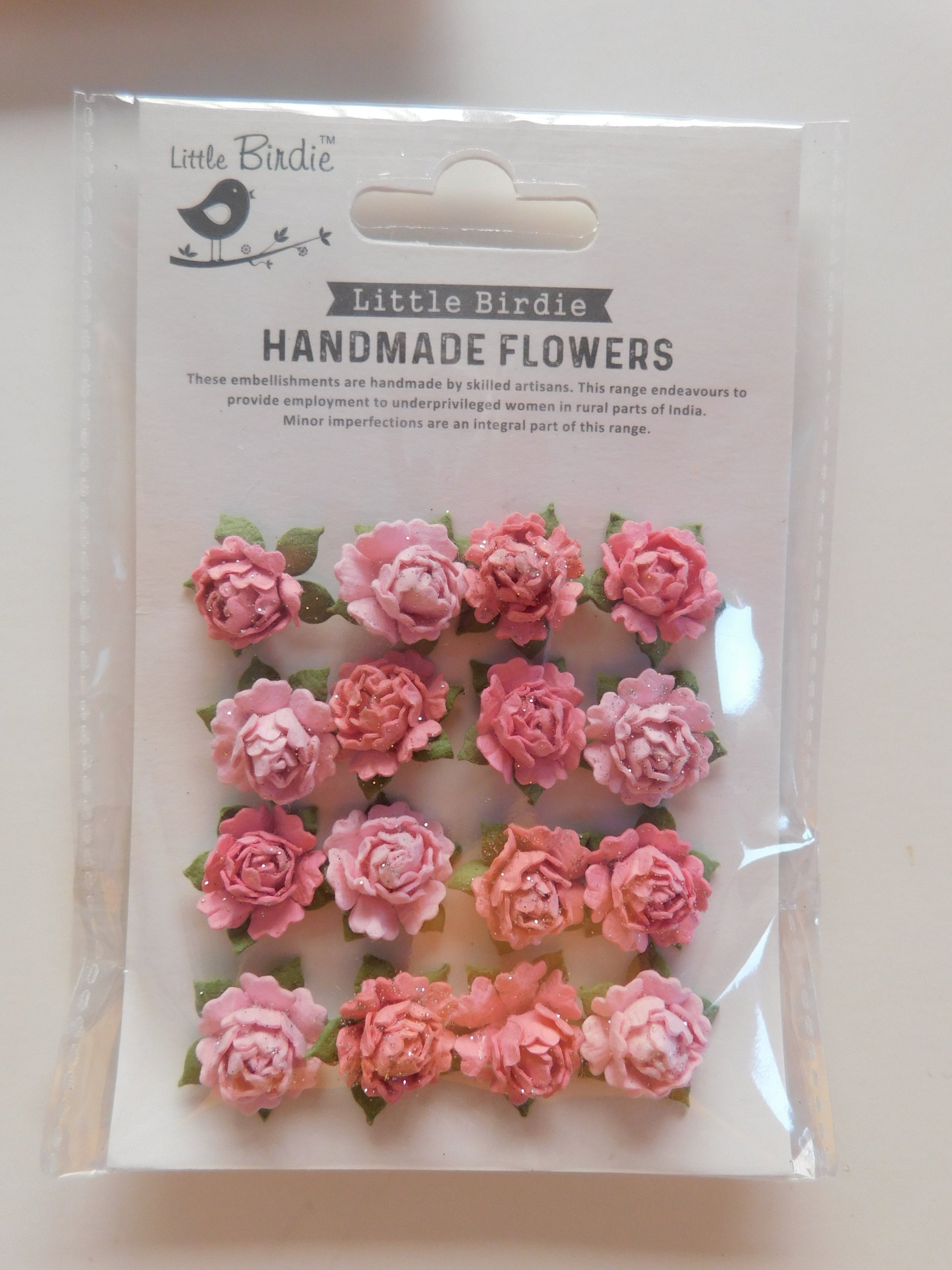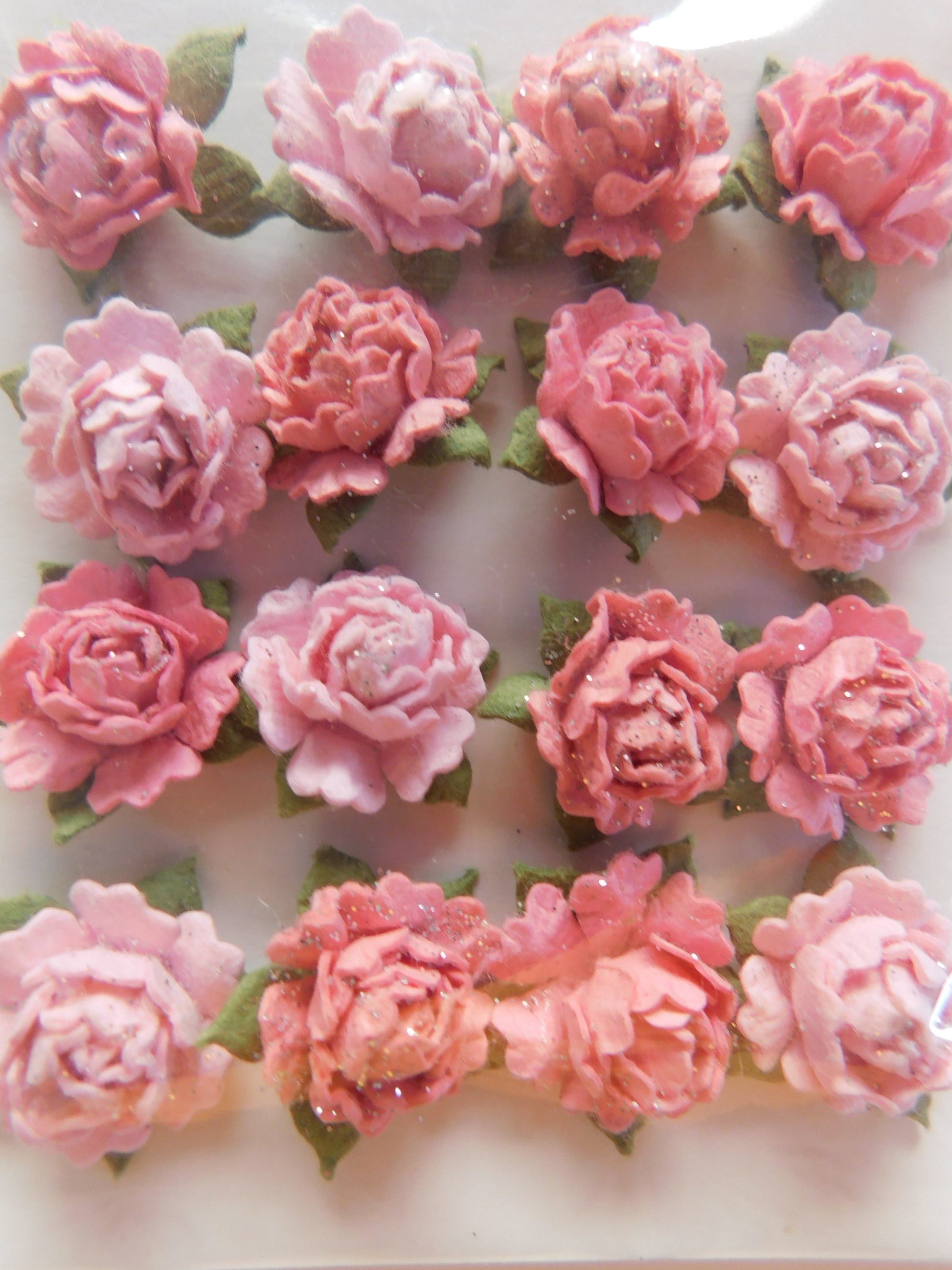 16 small handmade roses for decorating your creations. Can be used on scrapbooking, and other creations!