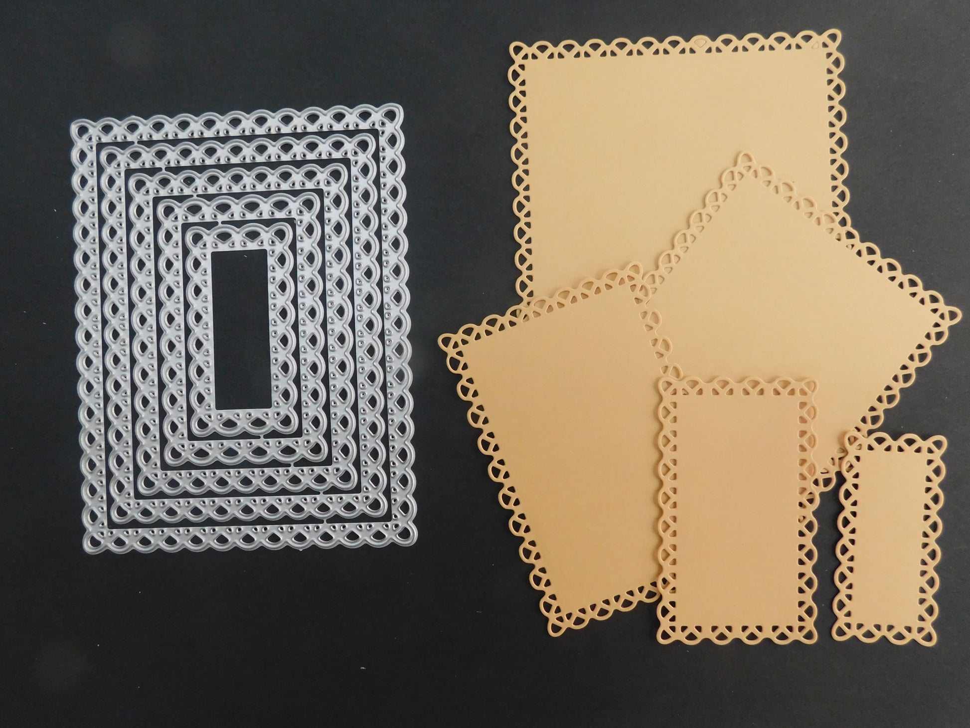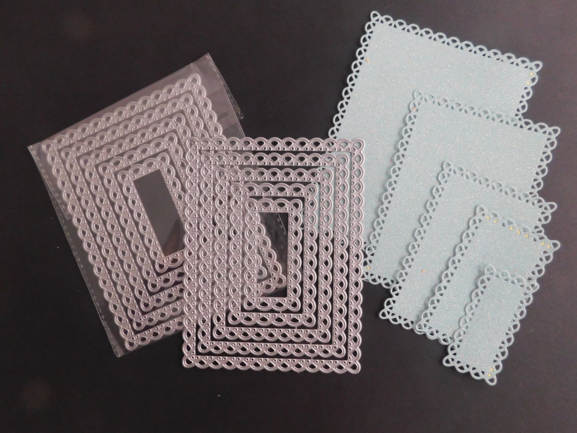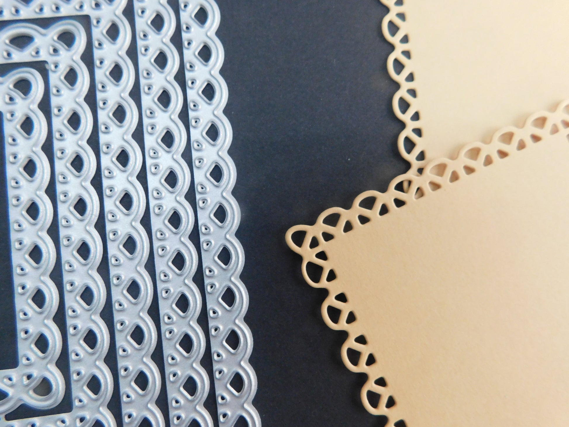 A necessary tool for card makers and scrap-bookers. Create beautiful rectangle shapes with lacey edges using this die-cut set.