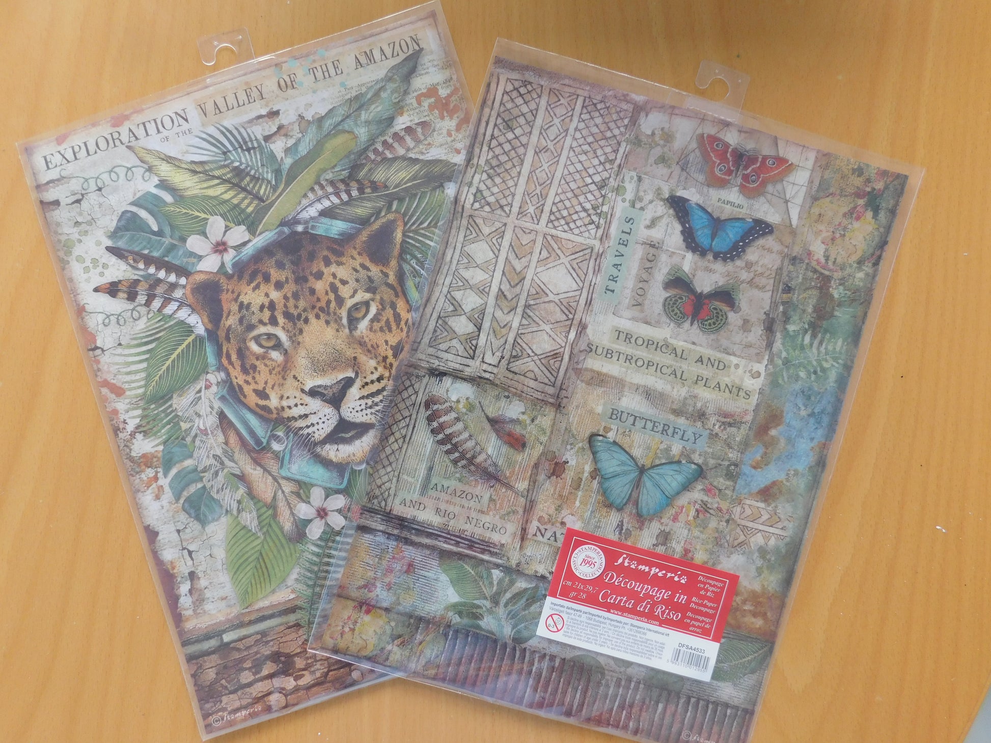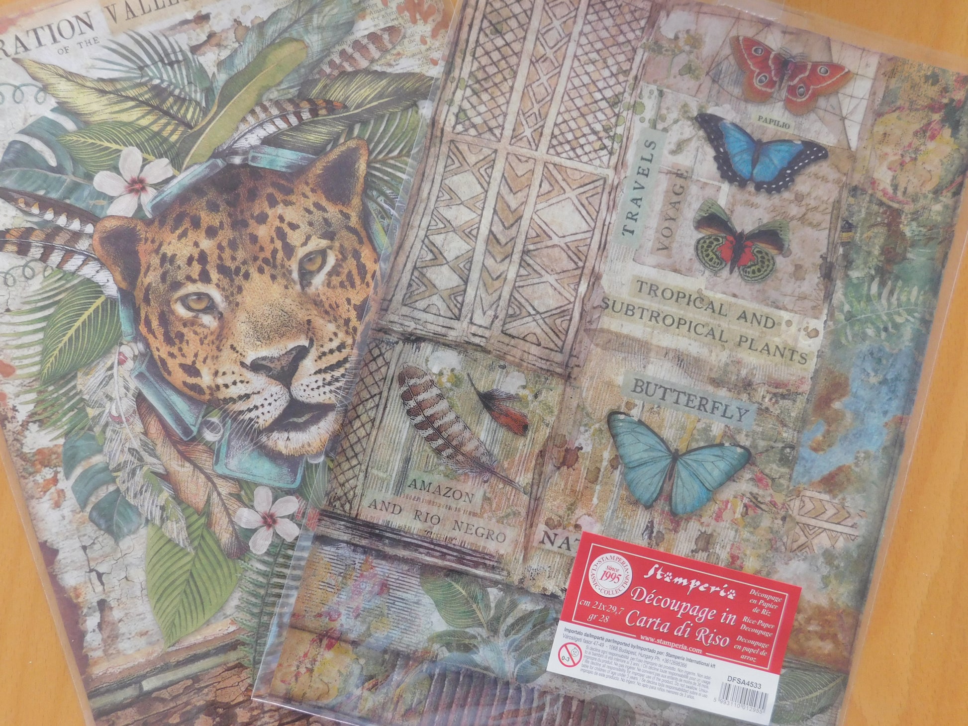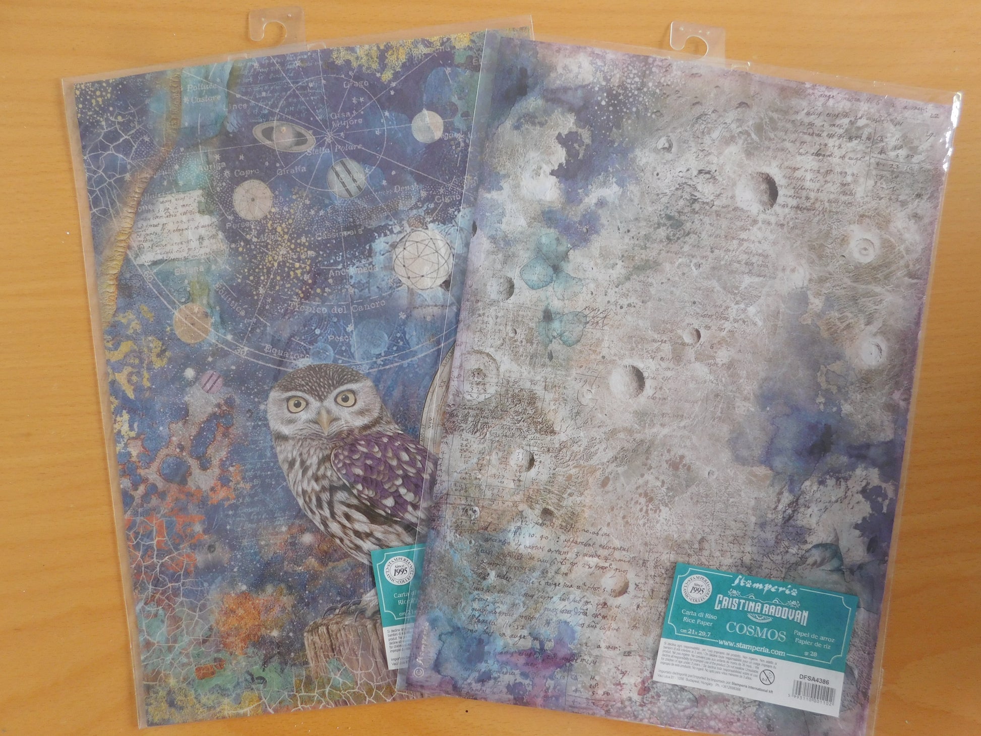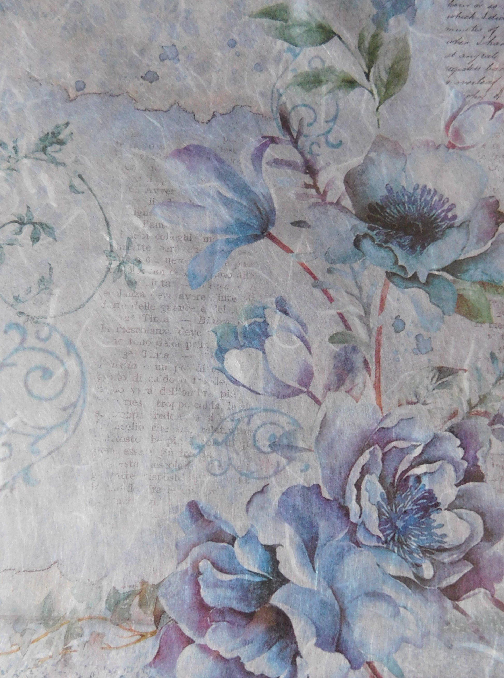 Set of two (different designs) Stamperia A4 rice paper in blue tones, suitable for decoupage on canvas, and many other surfaces such as wood, glass, plastic.