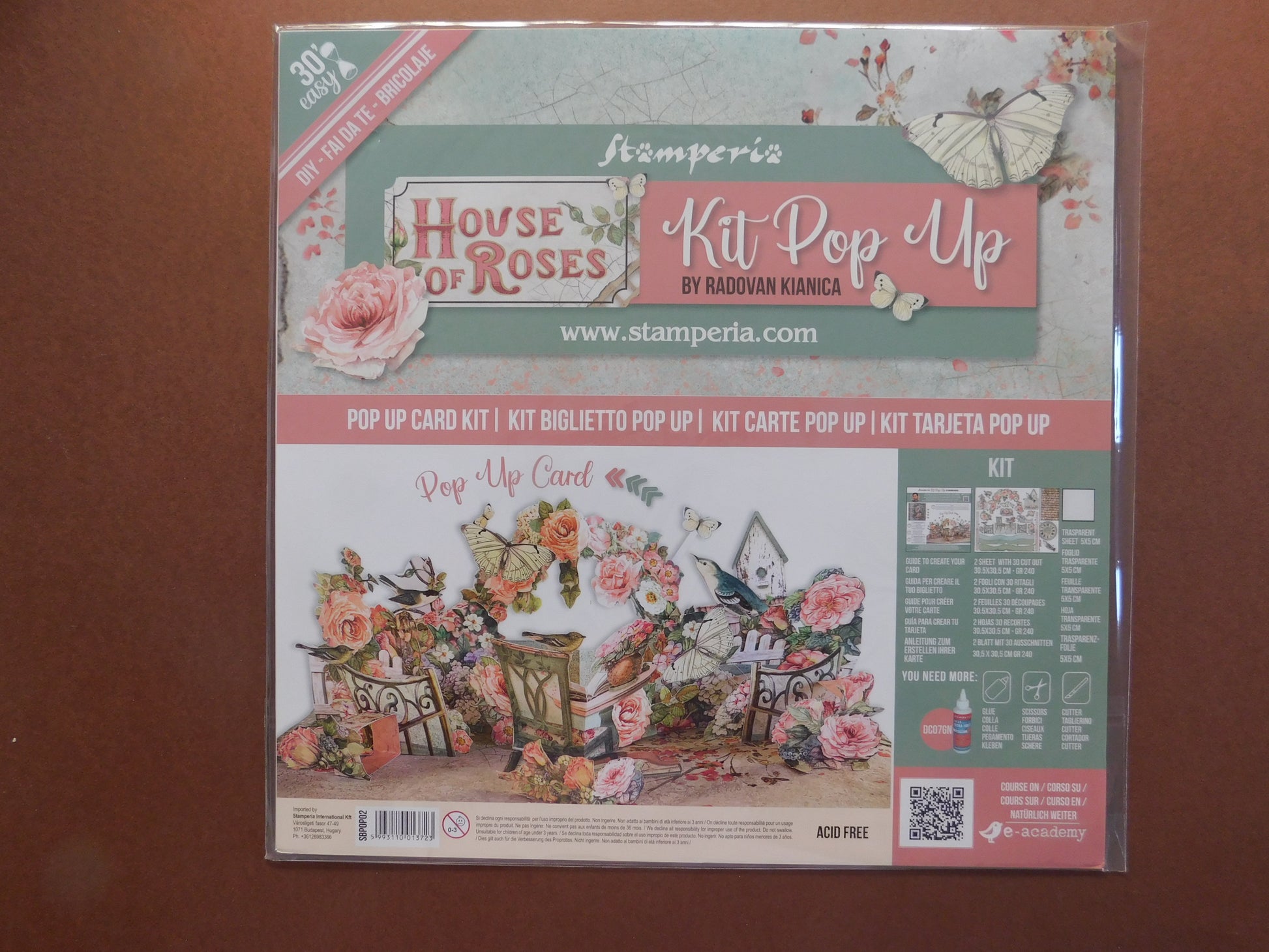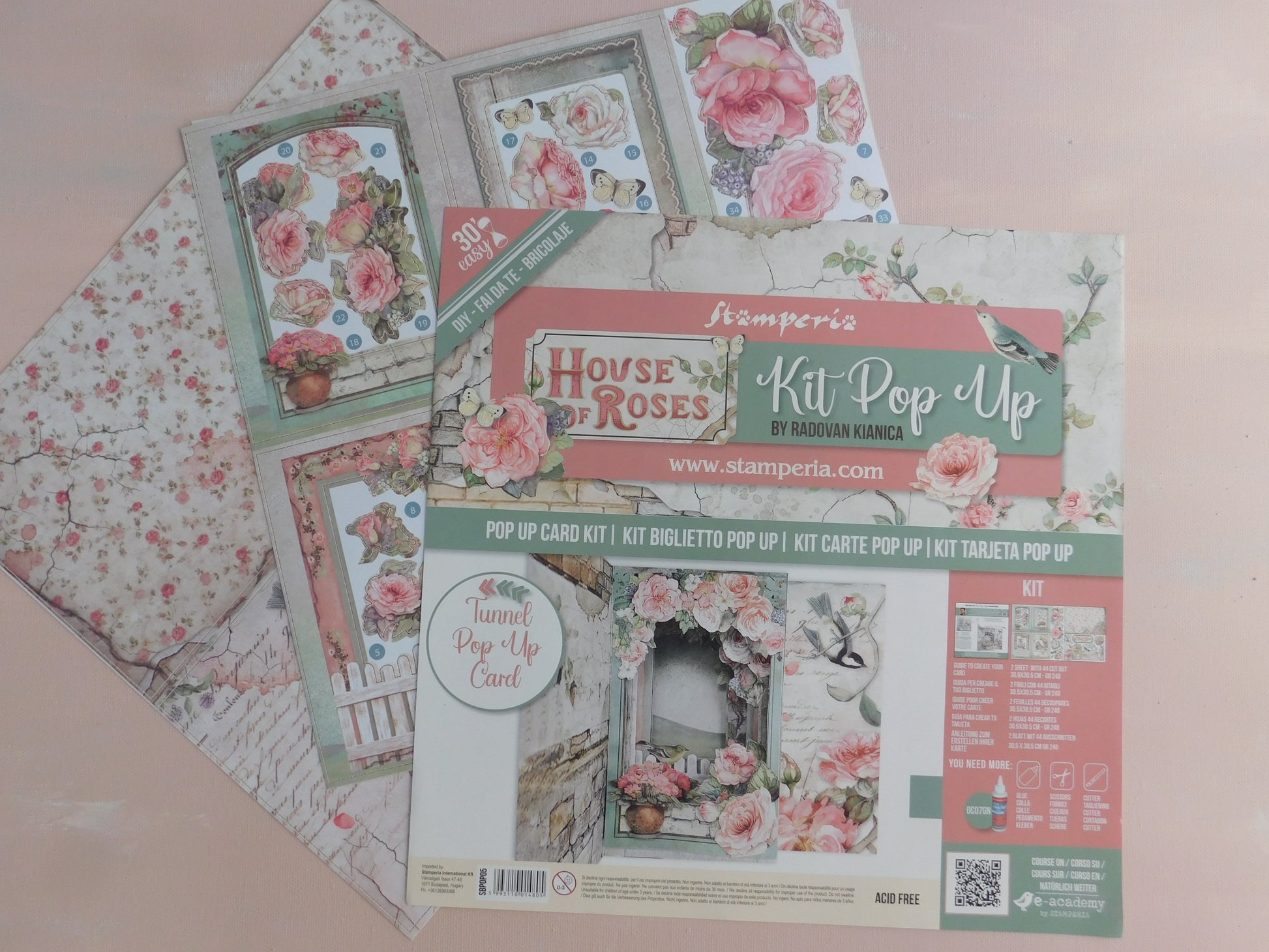 Create a beautiful card with this easy to make pop up card kit. Easy step by step instructions to follow. Designed by Radovan Kianica for Stamperia.