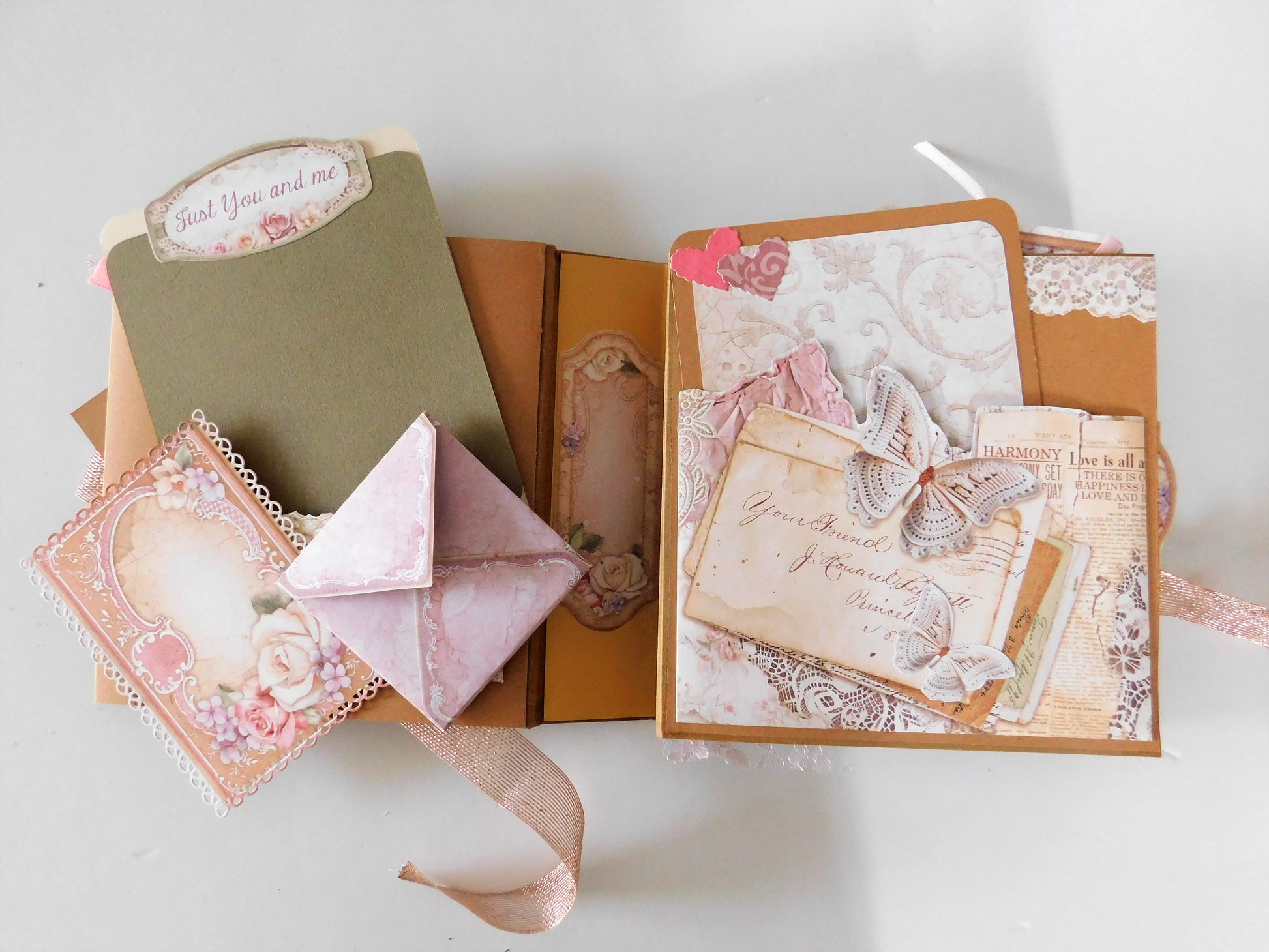 Romantic and sweet, you will just fall in love with this handcrafted album. Lots of pockets and space to add photos, messages, wishes, and thoughts! A perfect gift idea! The album, in addition to the front cover and back sheet, consists of 6 thick carton sheets (12 pages) . Best gift idea!.
