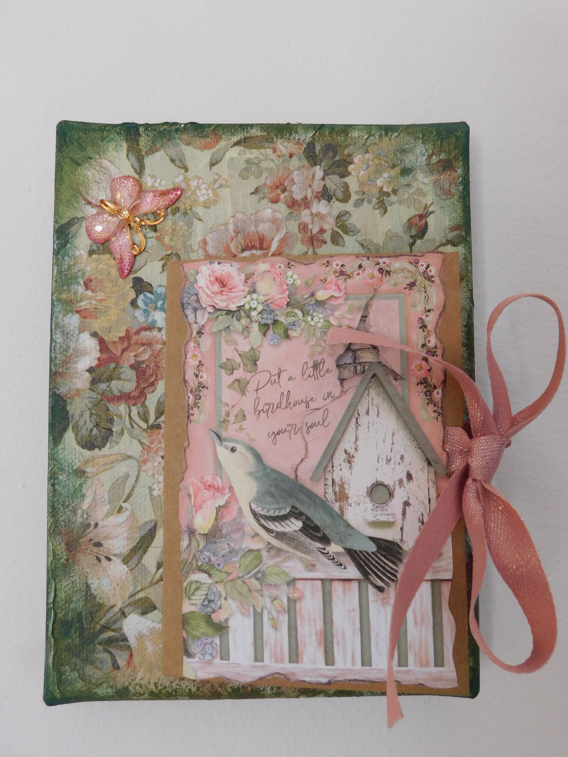 Materials: canvas, rice paper, ribbons, acrylic paints, carton card and other decorative materials.